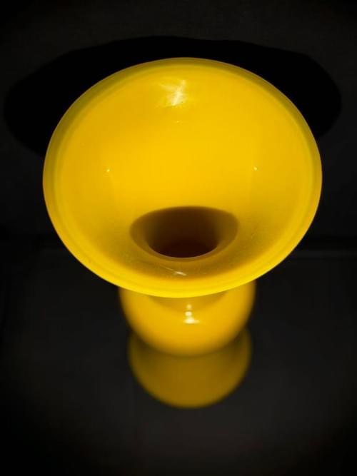 The gu form originates from archaic bronze vessels and was later reinterpreted in glass during the late Qing and Republican periods, serving both decorative and aesthetic purposes. Imperial yellow has long symbolized authority and auspiciousness, and such pieces were often used as interior ornaments or scholarly objects. This example reflects both a continuation of classical tradition and a refined adaptation in modern craftsmanship.