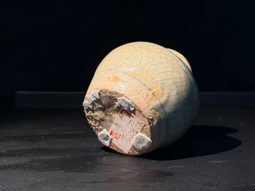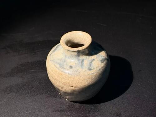 器形端庄秀雅,小口短颈,圆腹饱满,比例协调。通体施釉莹润,外壁以青花绘饰纹样,笔意洒脱流畅,层次分明。青花色泽浓淡相间,富有韵律变化,颇具明代青花特有之艺术表现力。底部露胎,胎质温润。整器虽体量小巧,却气韵生动,体现出明代瓷器简约而不失精致的审美意趣。此类青花瓷器在明代不仅服务于国内市场,亦大量通过海上丝绸之路远销海外,尤其流入东南亚、中东及欧洲地区。其纹饰与器型在一定程度上兼顾中西审美需求,反映出当时中外贸易交流的活跃景象。作为外销体系中的一类典型器物,此类作品既承载了实用功能,亦具有重要的历史与文化价值。